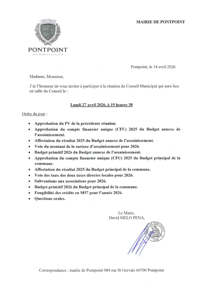 Ordre du jour du Conseil Municipal du 27 avril 2026 14 Avr 2026 | Non classé Ordre du Jour du CM du 27.04.2026Télécharger